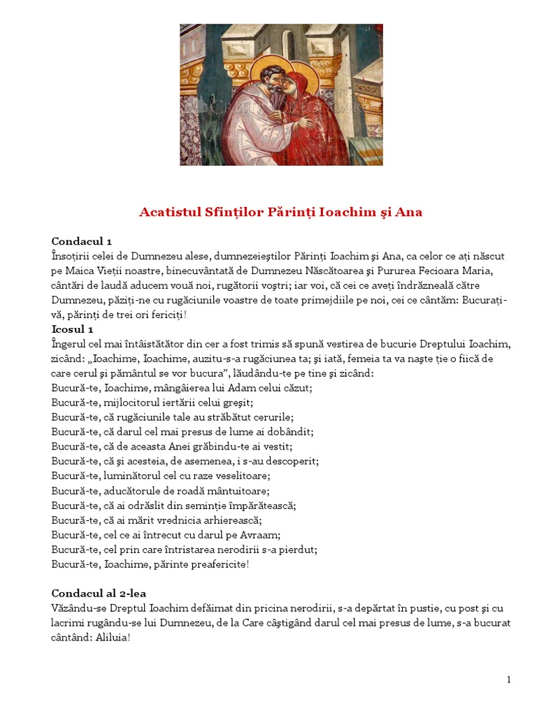 Acatistul (text) sfintilor ioachim si ana. Acatistul sfinţilor părinţi ioachim şi ana. Parintele este si clar vazator.