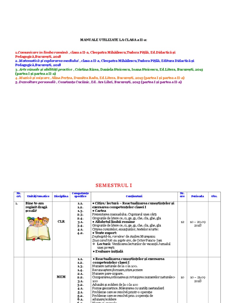 Planificare Clasa 1 Editura Didactica Si Pedagogica 2018