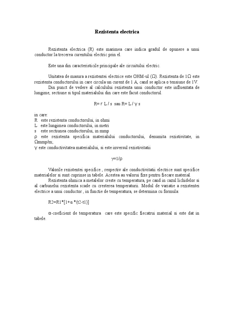 untuk "Unitatea De Masura A Rezistentei Electrice"